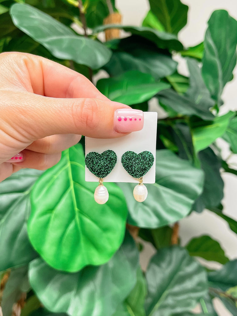 Glitter Heart Pearl Drop Earrings