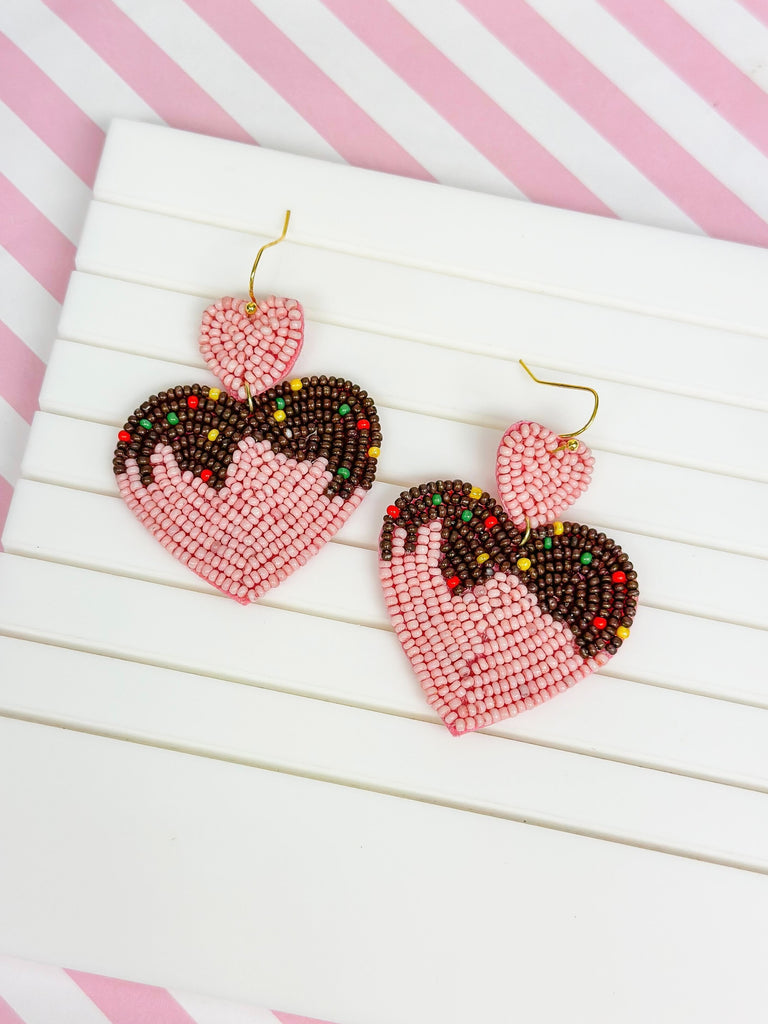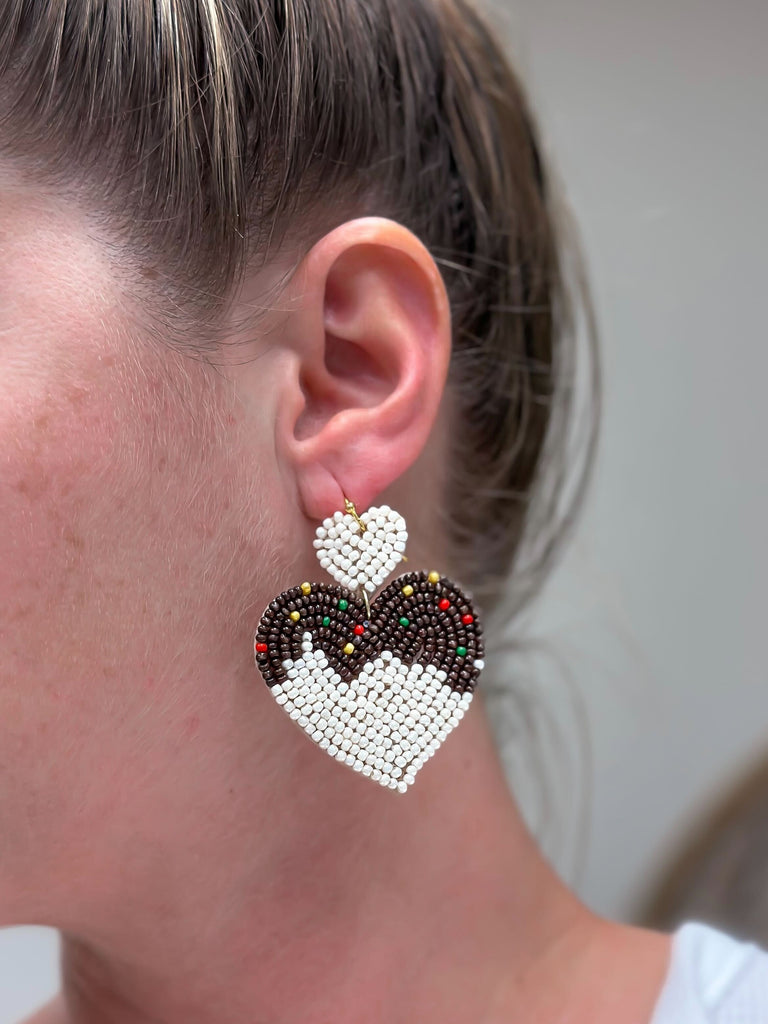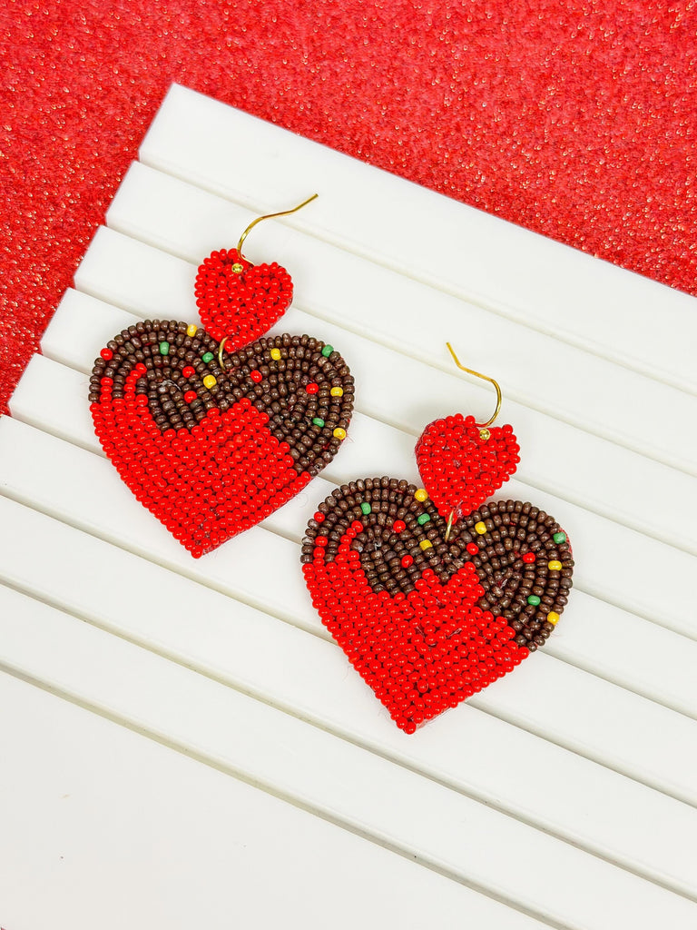 Add a pop of color and fun to your outfit with our Chocolate Heart Beaded Dangle Earrings! Perfect for Valentine's Day, these lightweight earrings are sure to make a statement.